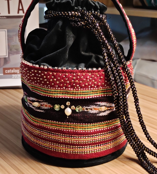 Tas karya Artisan dari Maluku, diproduksi sebagai Koleksi Premium menggunakan bahan terbaik. Dikreasikan hanya satu model per satuan item layaknya karya seni pribadi. Padukan sentuhan Etnik ke dalam Style mewah yang unik, warna material Velvet hitam